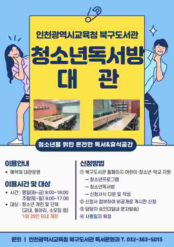 인천광역시교육청북구도서관, 청소년 독서방 예약 대관 운영