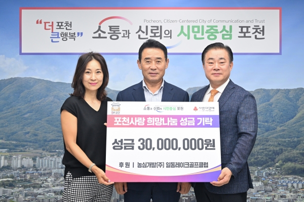 이번에 기부된 성금은 포천시 희망곳간으로 예치되어 장애인, 아동, 청소년, 노인 등 다양한 취약계층을 위해 사용될 예정이다.