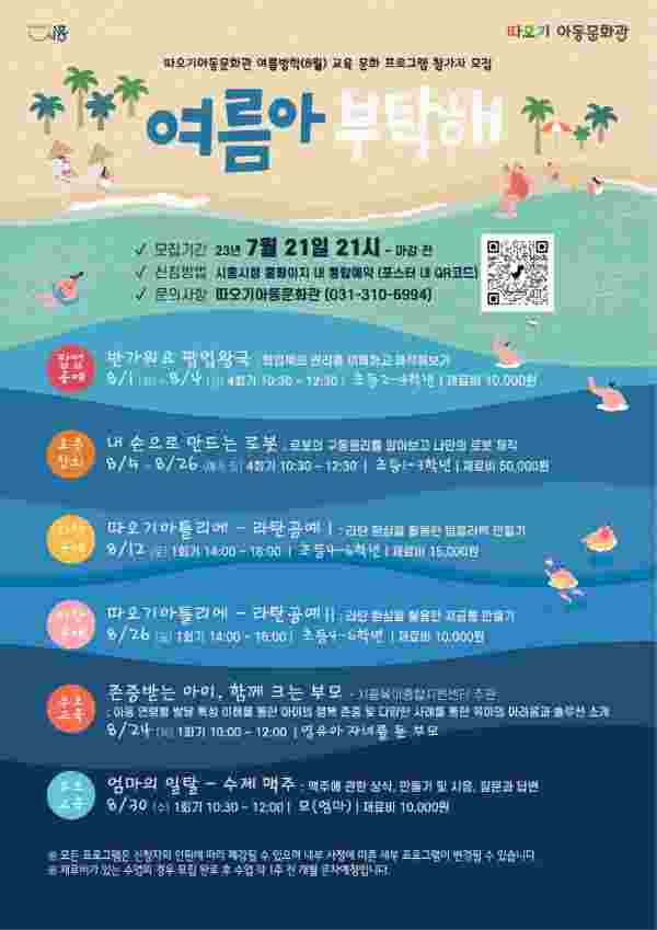 무더운 여름, 시원한 따오기아동문화관에서 다양한 문화 경험의 기회를 통한 특별한 추억을 만들어보시길 바란다”고 덧붙였다.