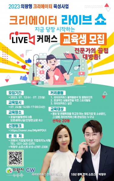 프로그램은 관내 창업기업과 소상공인, 라이브커머스에 관심 있는 누구나 신청할 수 있으며 선착순 마감 시까지 포스터의 QR코드나 링크를 통해 온라인 접수가 가능하다.