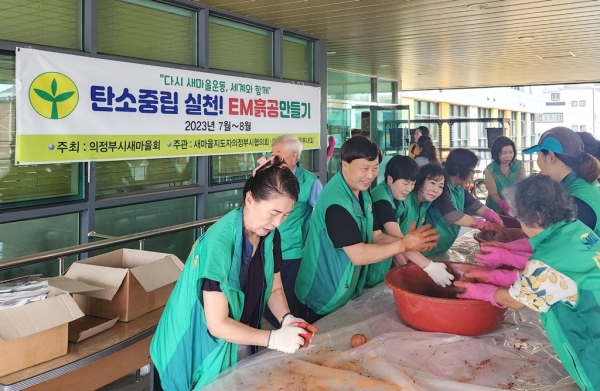 [금요저널] 의정부시 가능동주민센터는 7월 13일 가능동 새마을부녀회 회원 15명이 참여한 가운데 EM흙공 만들기 행사를 개최했다.