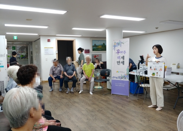 한편 센터에서 운영하고 있는 ‘백세만세 건강놀이학교’는 신장동 관내 경로당을 대상으로 간호사, 영양사, 운동처방사의 전문인력과 신장동 행정복지센터 간호사가 협력해 3주에 걸쳐 진행되는 프로그램이다.