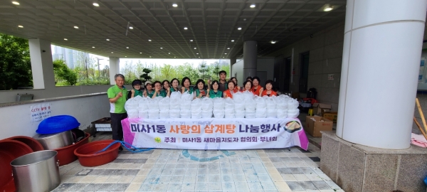 [금요저널]미사1동 새마을지도자와 부녀회는 지난 14일 미사1동 행정복지센터에서“사랑의 삼계탕 나눔행사”를 가졌다.