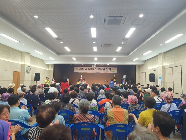 어르신들에게 몸에 좋은 식재료가 듬뿍 들어간 삼계탕을 제공하고 트로트 장구 등 다채로운 공연으로 즐거운 시간을 선사하며 훈훈한 정을 나눴다.