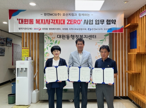 [금요저널] 오산시 대원동이 지난 17일 한전MCS 오산지점 및 대원동 지역사회보장협의체와 ‘대원동 복지사각지대 ZERO’ 사업 추진을 위한 업무 협약을 체결했다.