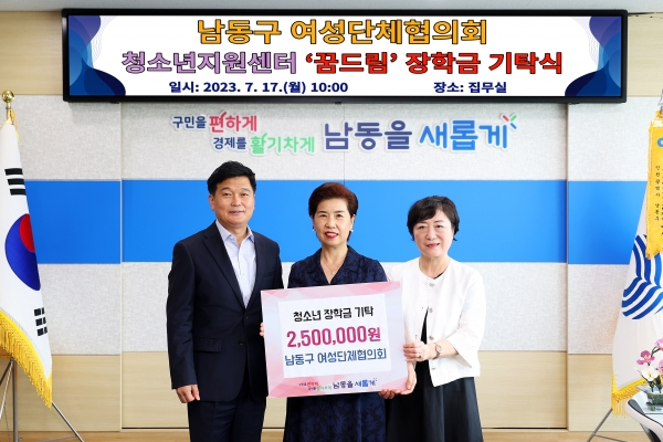 [금요저널] 인천시 남동구 여성단체협의회는 최근 청소년 지원센터 ‘꿈드림’에서 꿈을 키워가고 있는 청소년들을 위한 장학금 250만원을 전달했다고 18일 밝혔다.