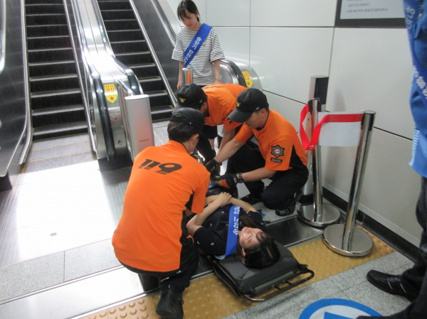 훈련은 엘리베이터 내 갇힘, 에스컬레이터 역주행 등 다양한 사고·고장 상황을 가정해 신속한 사고대응 체계 구축 등 실전 모의 구조 훈련으로 진행된다.