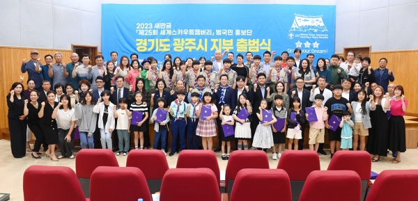 [금요저널] 광주시는 15일 광주하남교육지원청에서 광주시민과 유관기관단체장 등 200명이 참석한 가운데 2023 세계스카우트잼버리 범국민 홍보단 광주시 지부 출범식을 개최했다고 밝혔다.