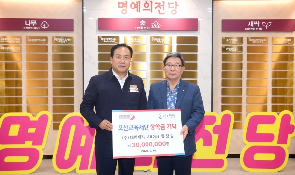 대림제지, 오산시에 지역인재 육성을 위한 장학금 3천만원 기탁