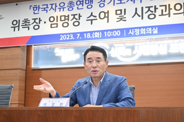 백영현 포천시장은 “유구한 역사와 전통에 빛나는 한국자유총연맹의 포천시지회 재건을 진심으로 축하드린다. 최근 드론작전사령부 창설 및 6군단 부지반환 문제와 더불어 역세권 개발 및 블루웨이 조성사업, 청성산 종합개발 등 도시발전을 위한 중요 국책·시책 사업을 펼치고 있는 바, 지역사회 내 분열을 통합하고 새로운 포천시 성장을 위한 원동력을 확보할 수 있도록 노력해주시길 바란다”고 전했다.