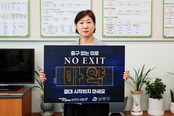 [금요저널] 조은행 남동구보건소장이 최근 마약중독의 위험성과 경각심 고취를 위한 ‘NO EXIT’ 릴레이 캠페인에 동참했다.