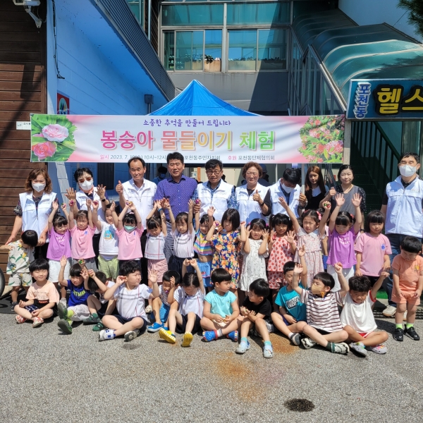 [금요저널] 포천동 주민자치회는 지난 19일 포천동 관내 어린이집 및 유치원 원생 400여명을 대상으로 봉숭아 물들이기 체험행사를 개최했다.