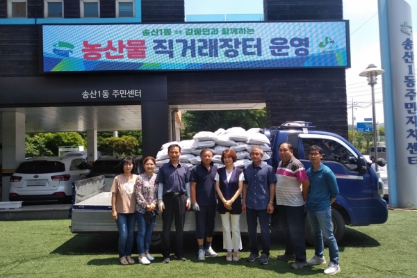[금요저널] 의정부시 송산1동주민센터는 7월 19일 주민센터 앞마당에서 자매결연지인 충북 괴산군 감물면과의 도농교류 활성화를 위한 우수 농산물 직거래행사를 성황리에 마쳤다.