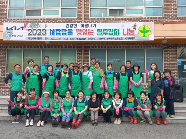 이번 행사는 관내 취약계층과 집중호우로 피해를 입은 지역 주민을 위한 봉사 활동의 일환으로 기아와 전국금속노동조합 기아차지부의 후원으로 마련됐다.