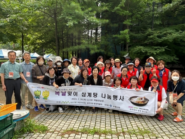 [금요저널] 부평구 삼산2동 주민자치회와 통장자율회는 중복을 맞아 지난 20일 박물관공원에서 지역 어르신 150여명에게 삼계탕, 떡, 과일 등을 대접했다.