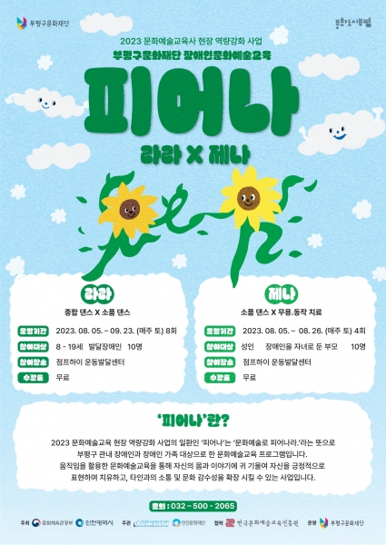 2023년 인천문화재단 문화예술교육사 현장 역량강화 사업의 일환인 ‘피어나’는 ‘문화예술로 피어나라’는 뜻으로 장애인의 문화예술 격차를 해소하고 참여 기회를 확대하기 위한 프로그램이다.