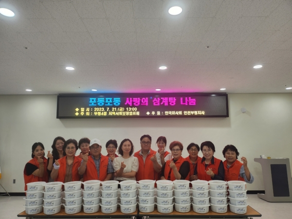 한선흥 부평4동 지역사회보장협의체 위원장은 “정성껏 준비한 삼계탕으로 지역주민들의 지친 일상에 힘이 되길 바란다”고 말했다.