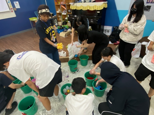 원어민 선생님의 안내를 받아 퀴즈, 보드게임, Tie-dye 등 팀워크 활동과 자기소개, 주제별 글쓰기, 말하기 활동을 진행했다.