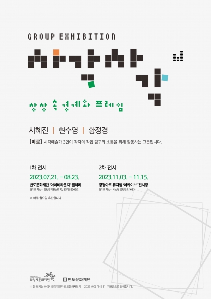 반도문화재단의 기업 후원으로 진행되는 이번 전시 ‘사각사각’展은 화성시에서 활동하는 여성 시각작가그룹 ‘미로’의 기획전시이며 집 밖의 의미 있는 사각지대를 탐색하는 전시로 정보경 큐레이터가 함께한다.