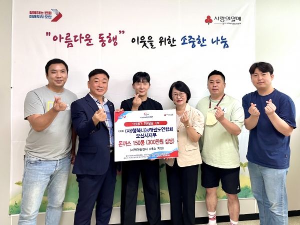 이에 전욱희 희망복지과장은 “지역사회에 선한 영향력을 전파하고 있는 행복나눔태권도연합회에 감사드리며 오산시도 생계에 어려움을 겪는 이웃들에게 더욱 보탬이 되고자 노력하겠다”고 말했다.