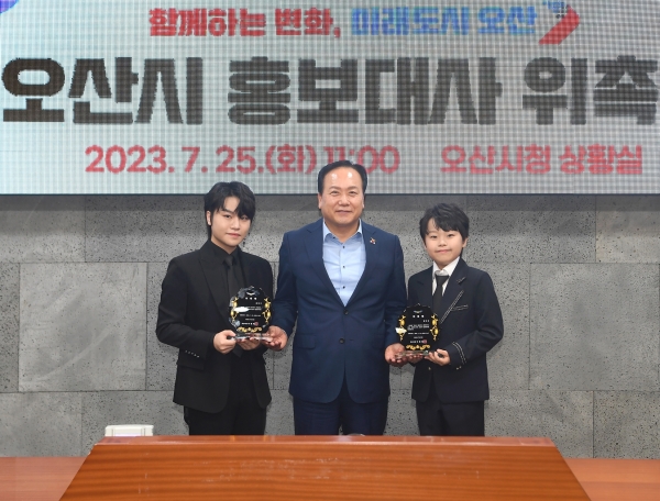 이날 위촉식에서 이권재 오산시장은 “이번에 대중들에게 인기와 사랑을 받는 황민우, 황민호 형제를 오산시 홍보대사로 위촉하게 되어 매우 기쁘게 생각하며 앞으로 많은 무대공연을 통해 시민들에게 위로와 감동, 즐거움을 선사하고 오산시를 홍보하는데 적극적인 활동을 부탁한다”며 축하 인사를 전했다.