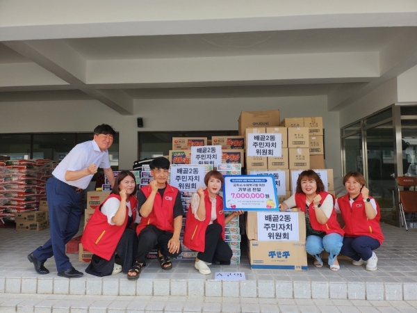 배곧2동 주민자치위원회에는 공주시의 호우 피해 소식을 듣고 자발적으로 기부금을 모금하고 수해 복구에 필요한 생필품 등을 준비해 후원 물품과 함께 기부했다.
