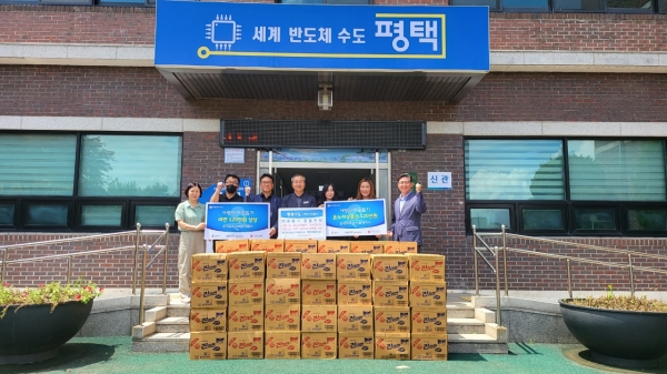 [금요저널] 한국도로공사 화성지사와 평택복합휴게소는 지난 25일 평택시 안중출장소에서 서부 지역 5개 읍면 저소득 취약계층에 온누리상품권, 라면 55박스를 이웃돕기 성품으로 전달했다.