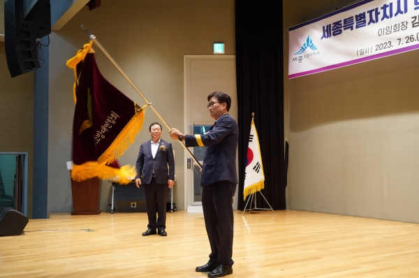 세종특별자치시는 26일 시청 여민실에서 ‘세종시 의용소방대연합회장 이취임식’을 가졌다.