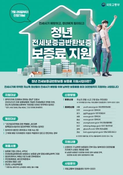 청년 전세보증금을 안전하게, 반환보증 보증료 지원사업 시행