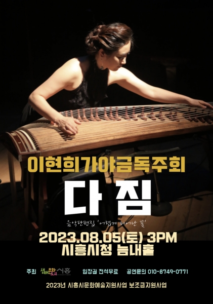 이현희 가야금 독주회는 시민에게 문화예술 향유 기회를 제공하고자 진행한 ‘시흥시 문화예술발전지원’ 공모사업을 통해 선정됐다.
