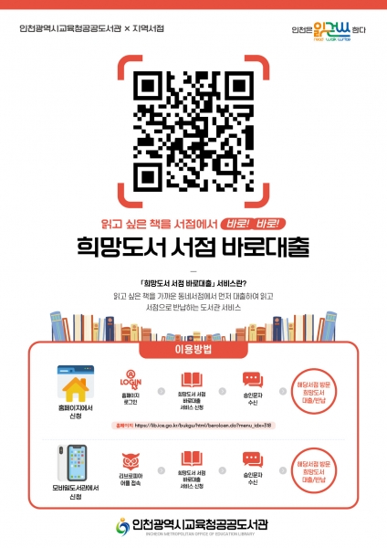 인천광역시교육청북구도서관, 희망도서 서점 바로대출 서비스 시행