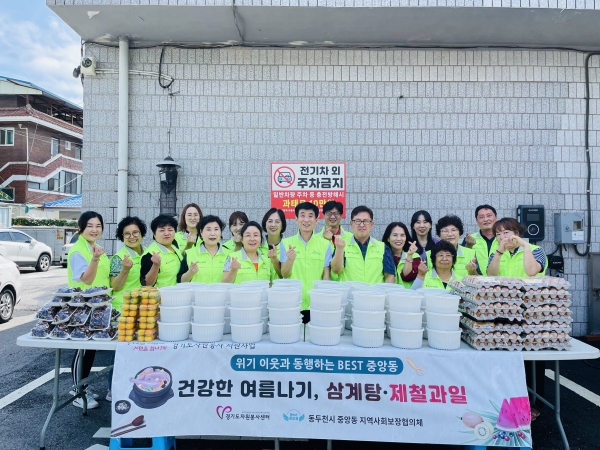 이날 지역사회보장협의체 위원들은 이른 아침부터 행정복지센터에 모여 전통시장에서 구입한 생닭과 한약재로 보양식을 만들어 관내 복지 사각지대 30가구에 제철과일과 함께 전달했다.