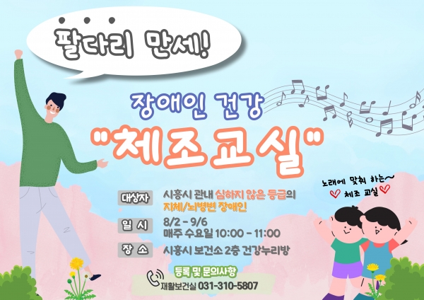 [금요저널] 시흥시는 지역 내 재가 장애인의 건강 관리를 위해 오는 8월 2일부터 9월 6일까지 장애인 건강 체조 교실을 운영한다.