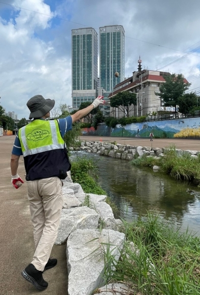 [금요저널] 의정부시는 7월 26일 의정부2동 행복마을관리소 지킴이들이 하천 수질 개선을 위한 ‘EM 흙공던지기 캠페인’을 진행했다고 밝혔다.
