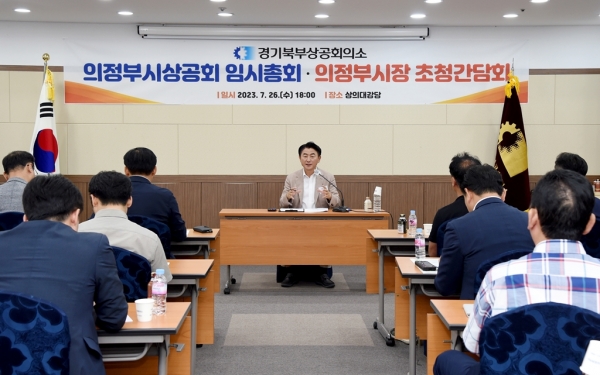 [금요저널] 김동근 의정부시장은 7월 26일 의정부시 기업인들과의 소통, 협력을 위해 의정부시상공회를 방문해, 취임 1주년 감사 인사말을 전하고 기업인들과 질의응답을 주고받았다.