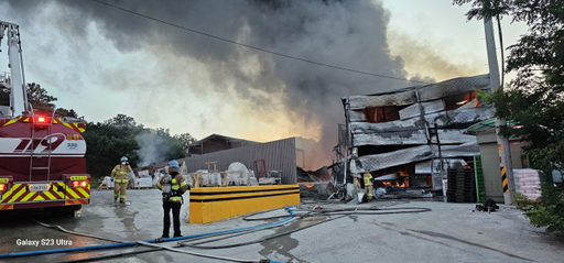 불은 샌드위치 패널구조의 공장 5개 동을 태우고 현재까지 진화 중이다.