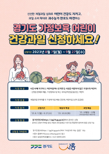 [금요저널] 시흥시가 오는 8월 7일부터 ‘2023년 가정보육 어린이 건강과일 공급사업’ 신청을 받는다.