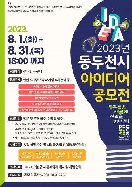 [금요저널] 동두천시는 다양한 시민 아이디어를 발굴해 시정정책에 적극 활용하기 위해 ‘2023년 동두천시 아이디어 공모전’을 실시한다.