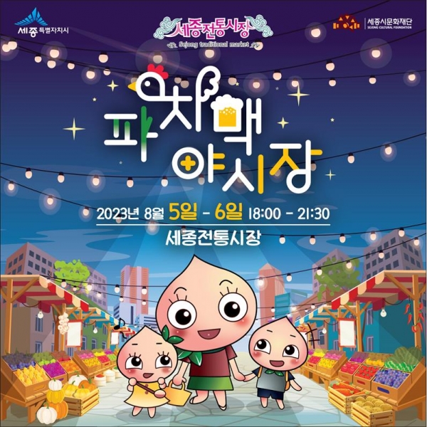 세종특별자치시는 오는 5일부터 6일 오후 6시부터 오후 9시 30분까지 조치원읍 세종전통시장 내 중앙통에서 ‘파치맥 야시장’을 연다고 1일 밝혔다.