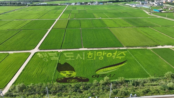 [금요저널] 여주시는 세종대왕릉역 인근 2개소와 여주보 전망대 주변 1개소 총 1.5ha의 논에 형형색색의 유색벼를 사용해 논그림을 조성했다.