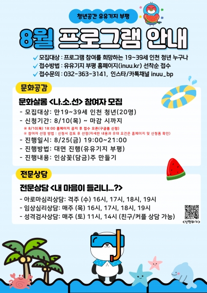 부평구 청년공간 유유기지 부평, 8월 프로그램 참여자 모집