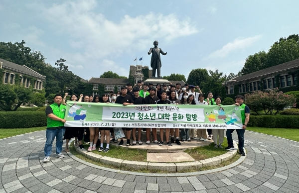 ‘‘여름방학, 놀면 뭐하니?’ 2023년 청소년 대학 문화 탐방’은 2022년 읍면동 지역사회보장협의체 평가 최우수로 받은 시상금을 활용해 추진하는 사업으로 이날 행사는 청소년 학업 동기부여를 위해 평소 접하기 힘든 연세대학교 신촌캠퍼스 견학과 대학로 연극 관람으로 진행됐다.