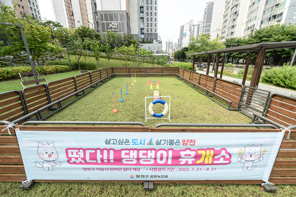 아울러 구는 신월7동 오솔길공원에도 140㎡ 규모의 이동식 반려견 쉼터를 마련했다. 이는 올해 초에 설치한 신월5동 으뜸가로공원에 이어 신월동 지역에 두 번째로 조성된 쉼터로, 부드러운 잔디밭에 설치돼 반려견과 견주의 이용 편의를 높였으며 공간을 확장해 개방감을 더했다.
