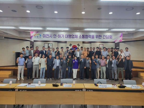[금요저널] 최근 경기침체로 인한 인허가 대행업체의 어려운 상황을 공감하며 이천시는 지난 8월 2일 관내 공간정보협회, 건축사 협회와 관계 공무원이 참석한 가운데 건축·개발행위 관련 원활한 소통 협력을 위한 간담회를 개최했다.
