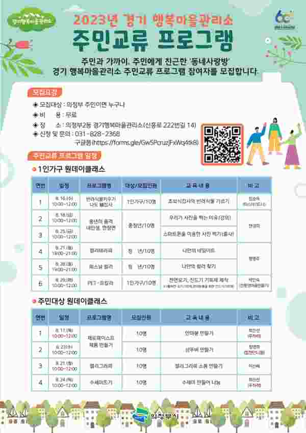 [금요저널] 의정부시는 ‘경기 행복마을관리소’가 지역주민에게 친근한 동네 사랑방으로 자리매김할 수 있도록 8월 16일부터 10회에 걸쳐 주민교류 프로그램을 운영한다.