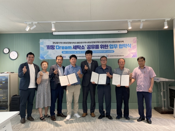 [금요저널] 화성시 향남읍지역사회보장협의체가 팔탄면지역사회보장협의체, 장안면지역사회보장협의체와 함께 희망Dream세탁소 공유를 위한 업무 협약을 지난 3일 체결했다.