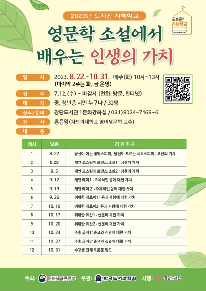 도서관 관계자는 “시민들이 대중적인 영문학 소설을 통해 인생의 가치를 공유하며 공동체 속 개인의 삶의 방향을 설정하는데 좋은 기회가 될 것”이라고 말했다.