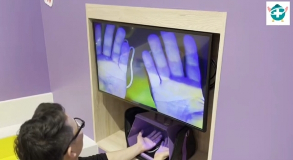‘뷰 박스’는 대상자가 손에 형광 로션을 바르고 평상시처럼 손을 씻고 난 뒤 뷰 박스를 통해 손에 남아 있는 형광물질이 어느 정도인지 직접 관찰함으로써 평상시 손 씻기가 제대로 이루어지고 있는지 직접 눈으로 확인할 수 있다.