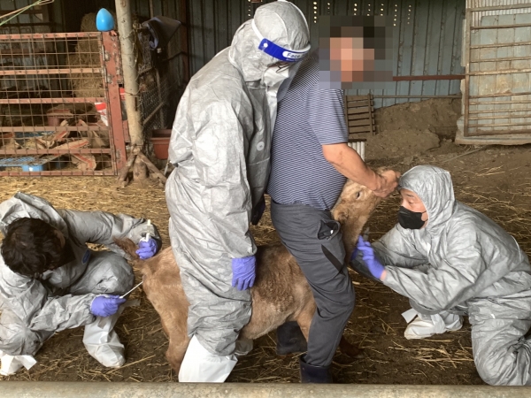 가축방역관이 관내 한 축산농가에서 가축전염병 검사를 하고 있는 모습(사진=세종시)