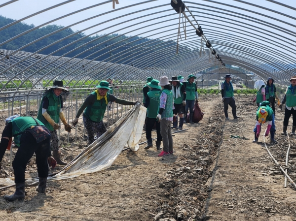 참가자들은 피해 현장을 찾아 수해민을 위로하고 농경지 비닐하우스 정리와 폐기물 수거 등 35℃를 웃도는 폭염 속에서도 아픔을 함께 나누는 데 구슬땀을 흘렸다.